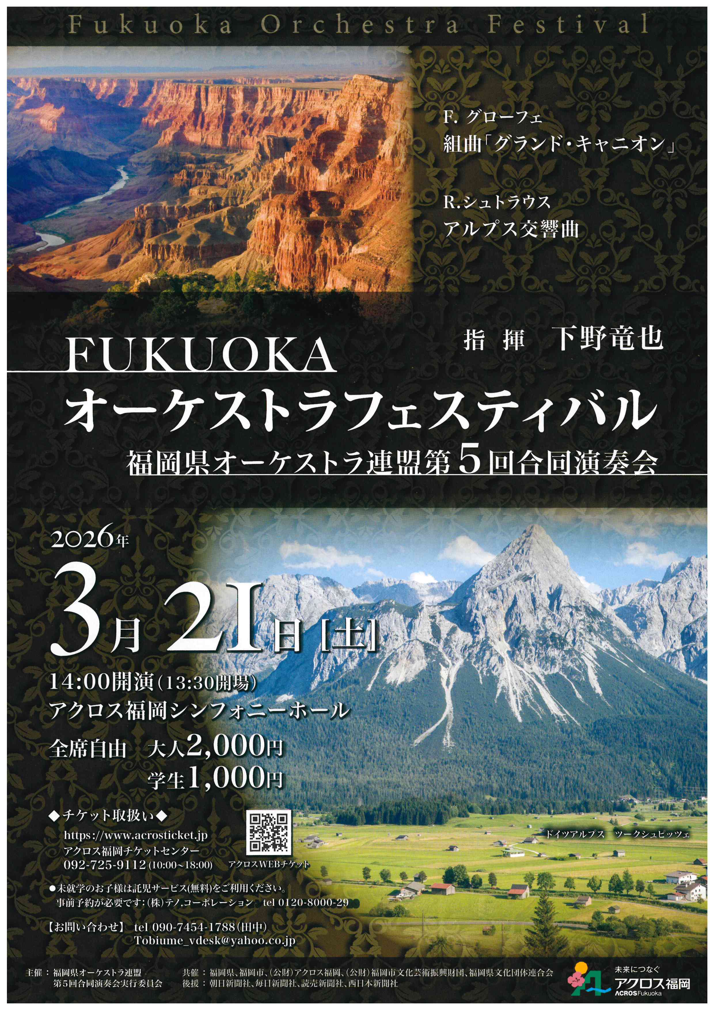 お問い合せは、福岡県オーケストラ連盟 田中 TEL090-7454-1788 まで