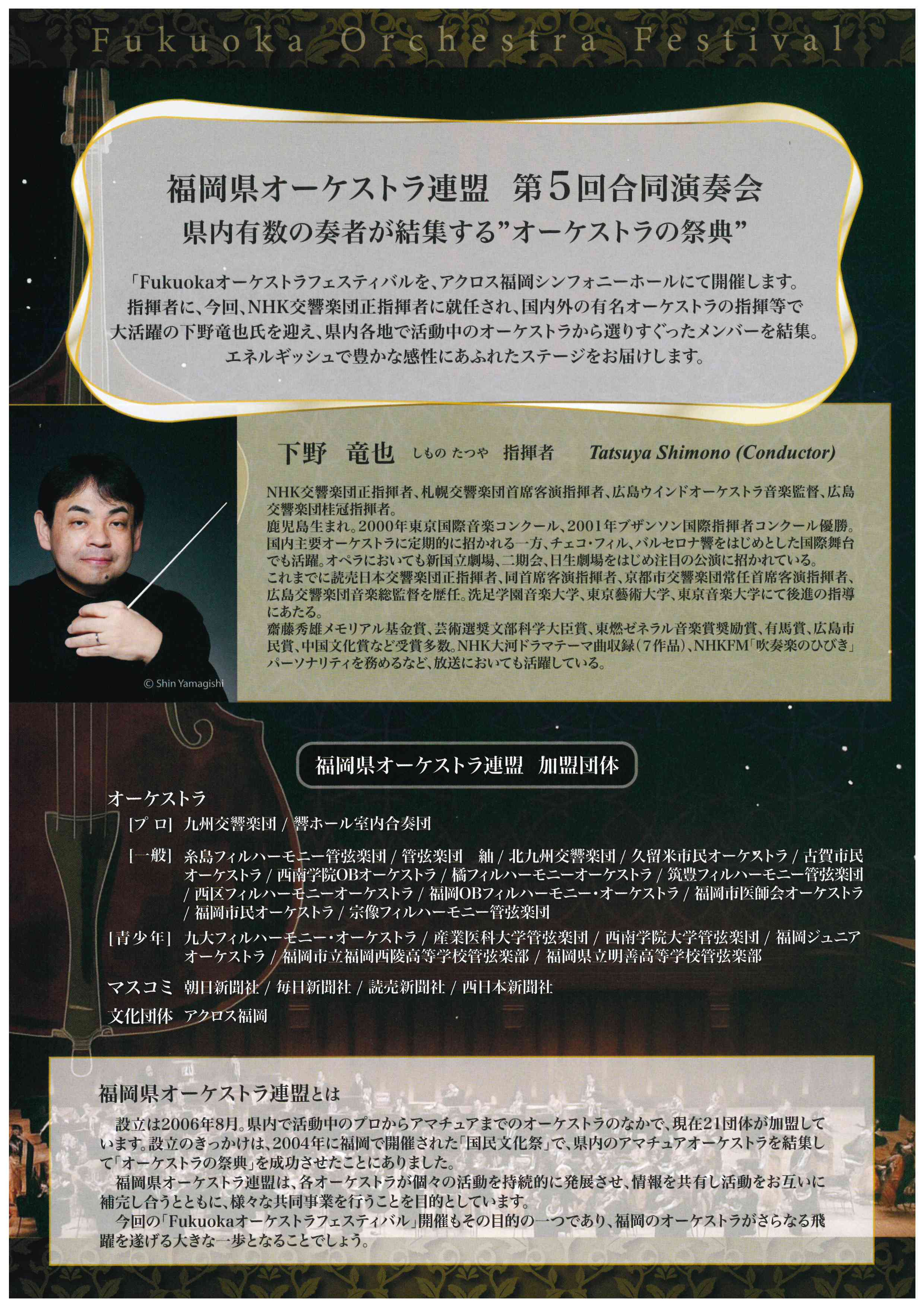 福岡県オーケストラ連盟は、県内有数の奏者が結集する’オーケストラの祭典’ 第5回合同演奏会をアクロス福岡シンフォニーホールにて開催いたします。